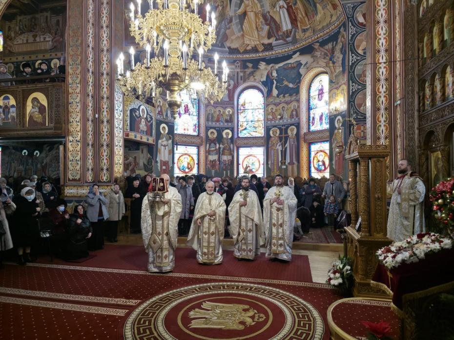 La finalul Sfintei Liturghii, Părintele Episcop-vicar le-a mulțumit clericilor și credincioșilor pentru împreuna rugăciune, în timp ce mulțimea prezentă a cântat colinde.